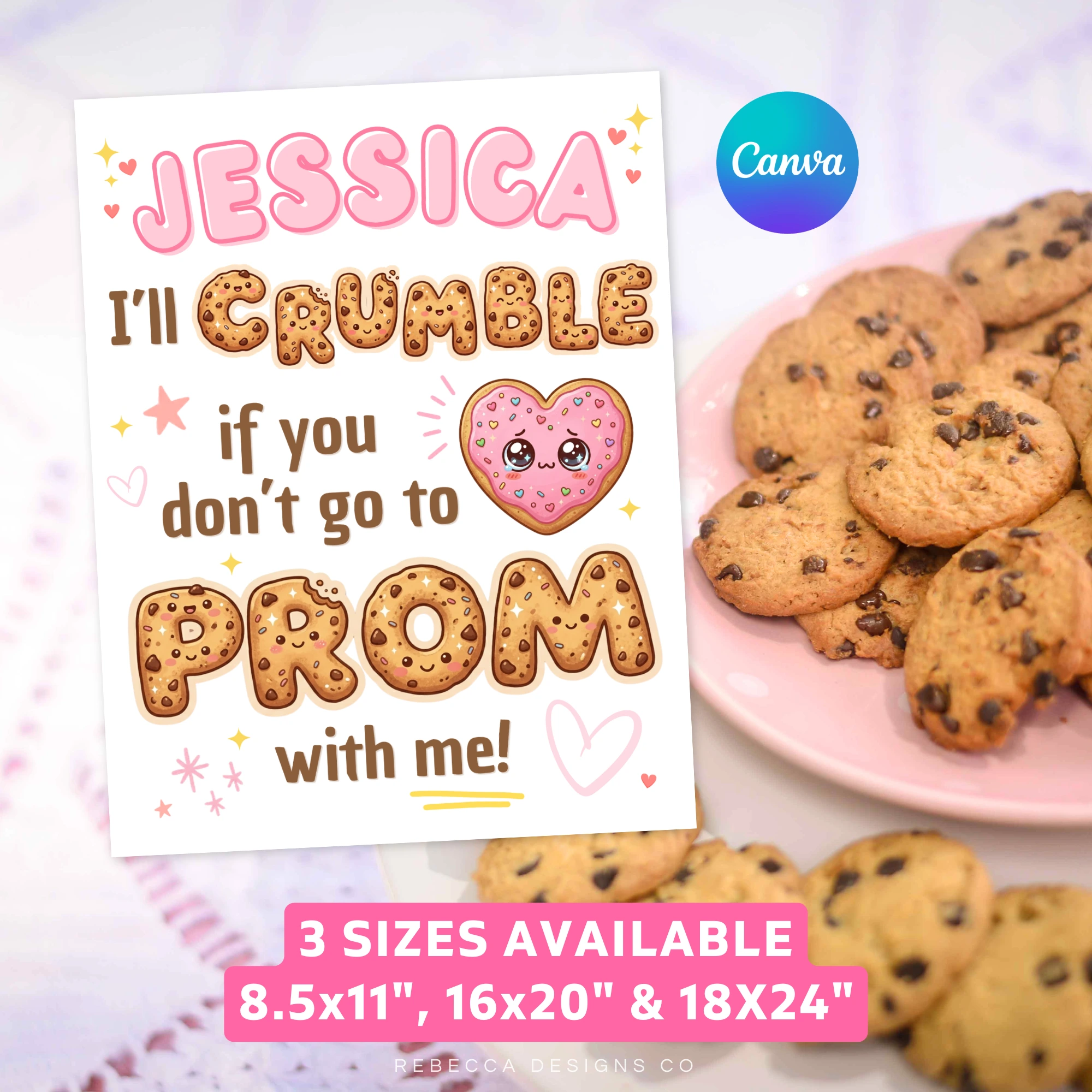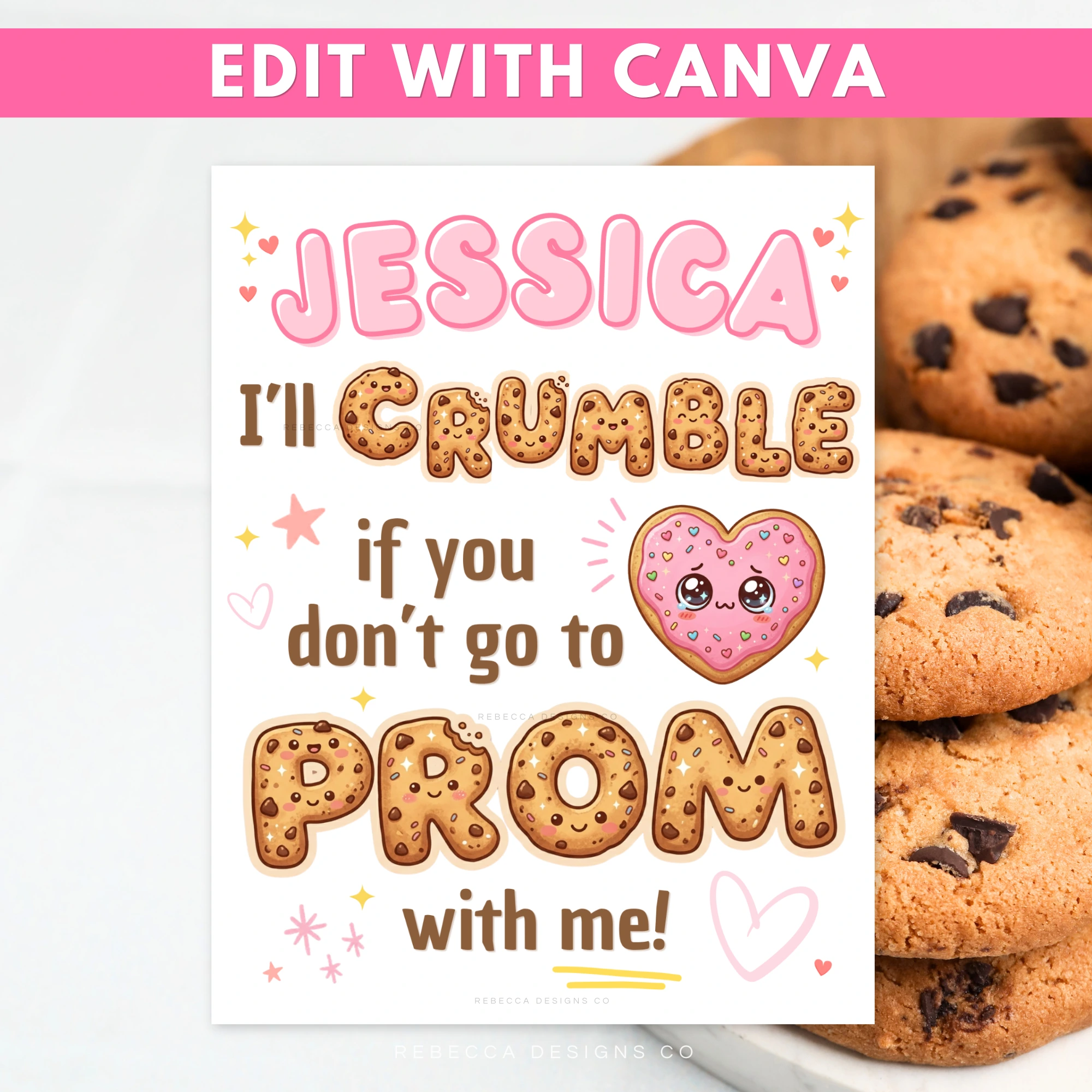 Cookies Prom Proposal Editable Canva Printable My Heart Will Crumble Prom Promposal Poster Cookie Funny Prom Proposal Sign Prom Card Cookie