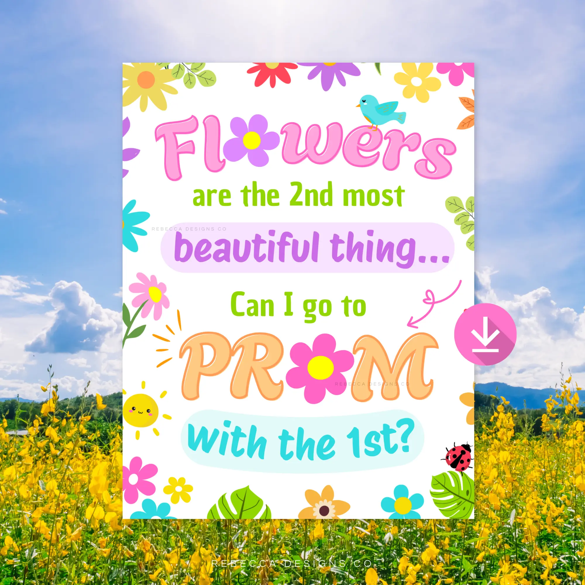 🌸 Flowers Prom Proposal Sign – Printable Poster 🌸 Instant Download