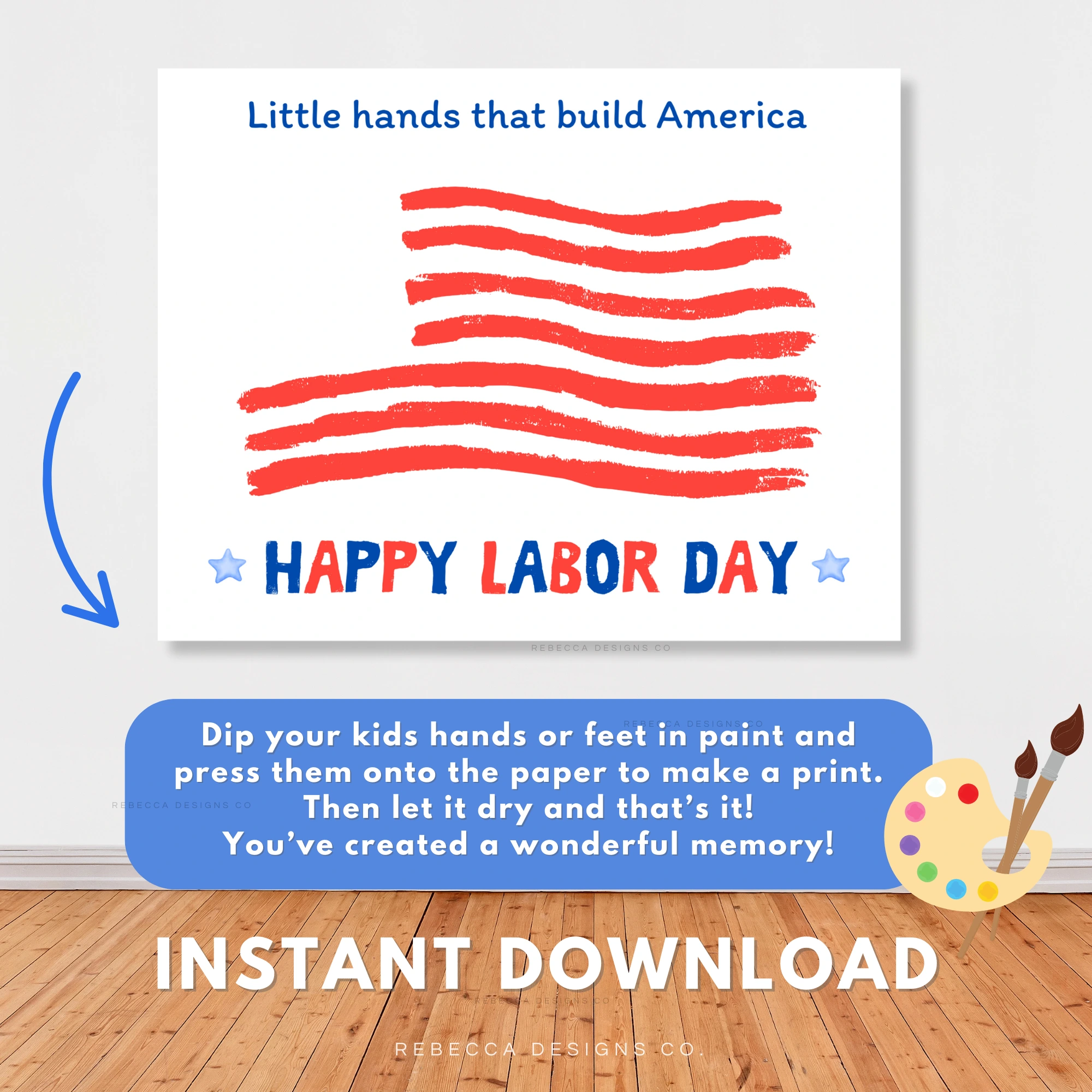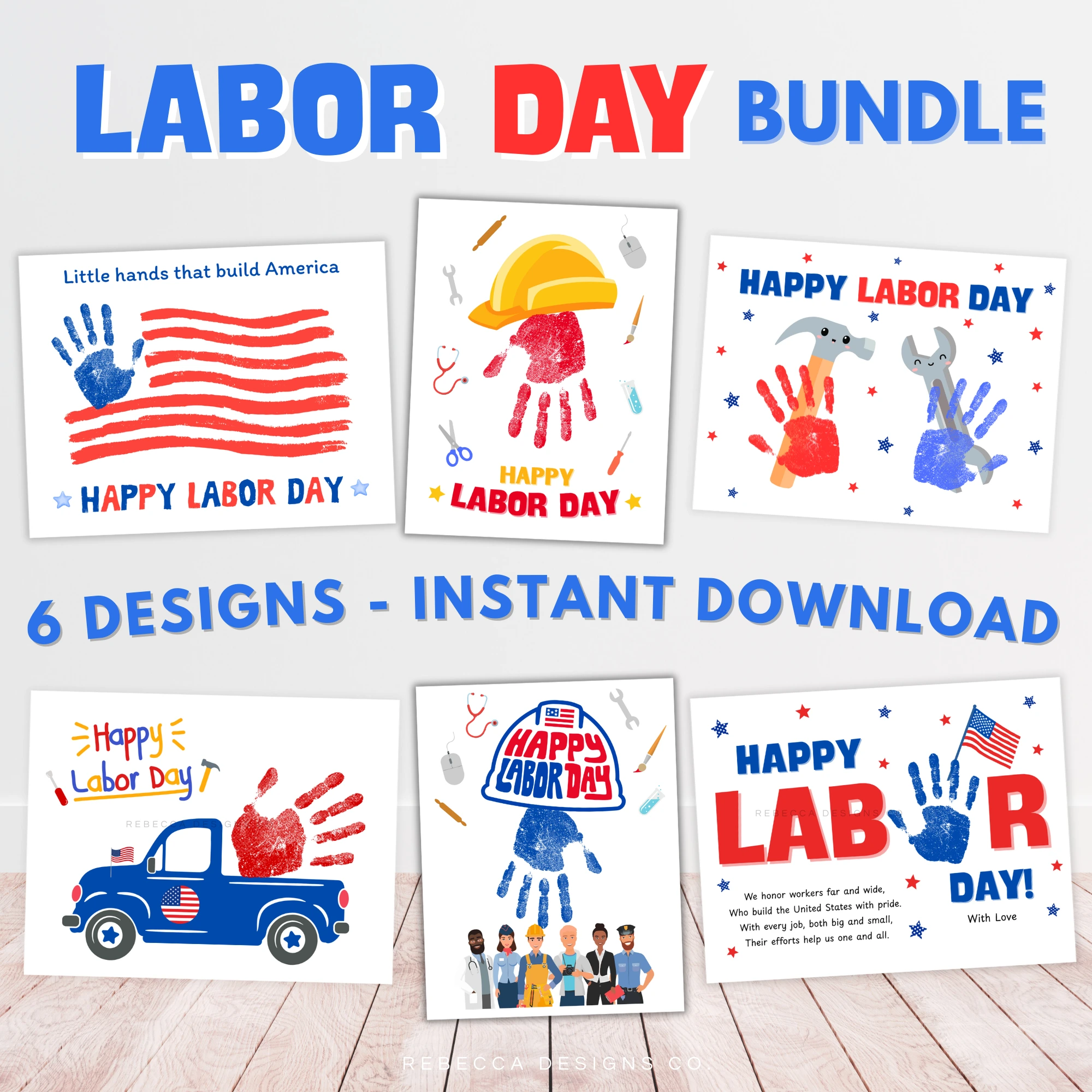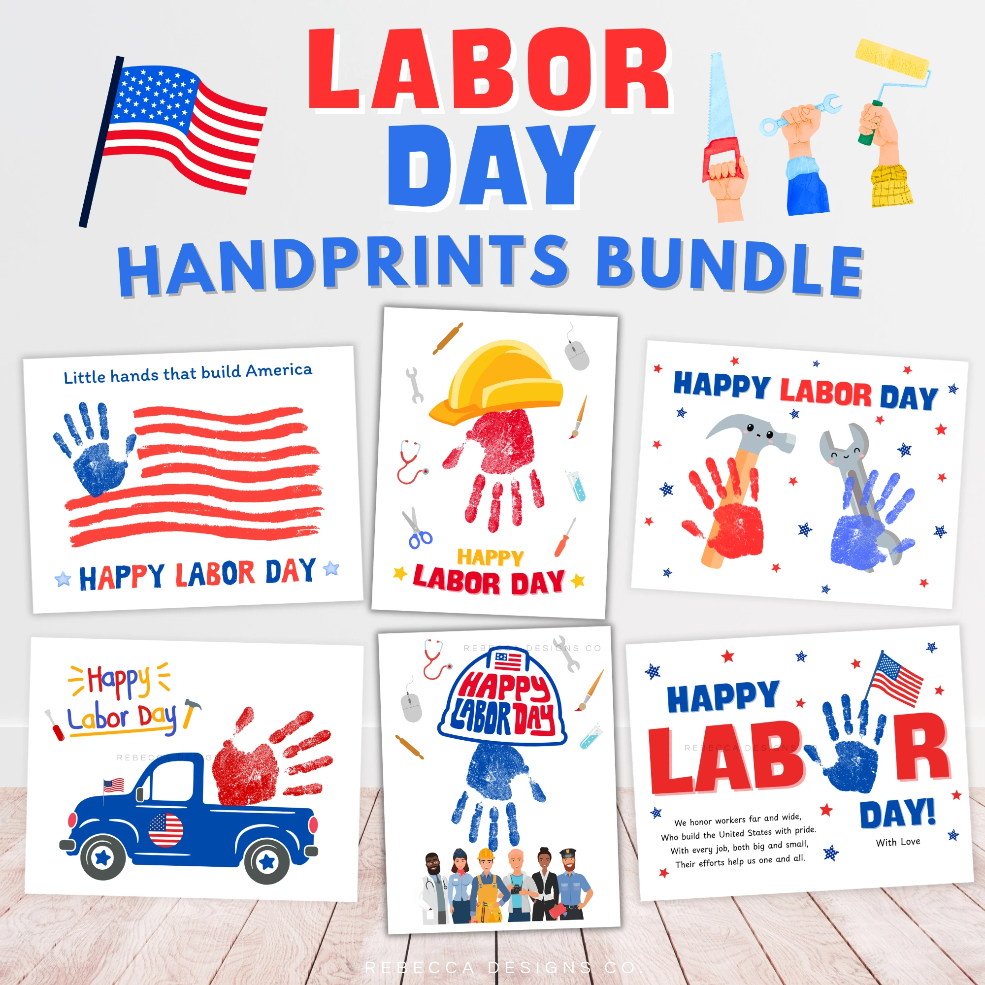PRINTABLE LABOR DAY BUNDLE KIDS HANDPRINT OR FOOTPRINT ACTIVITY – 6 DESIGNS – INSTANT DOWNLOAD – NOT EDITABLE